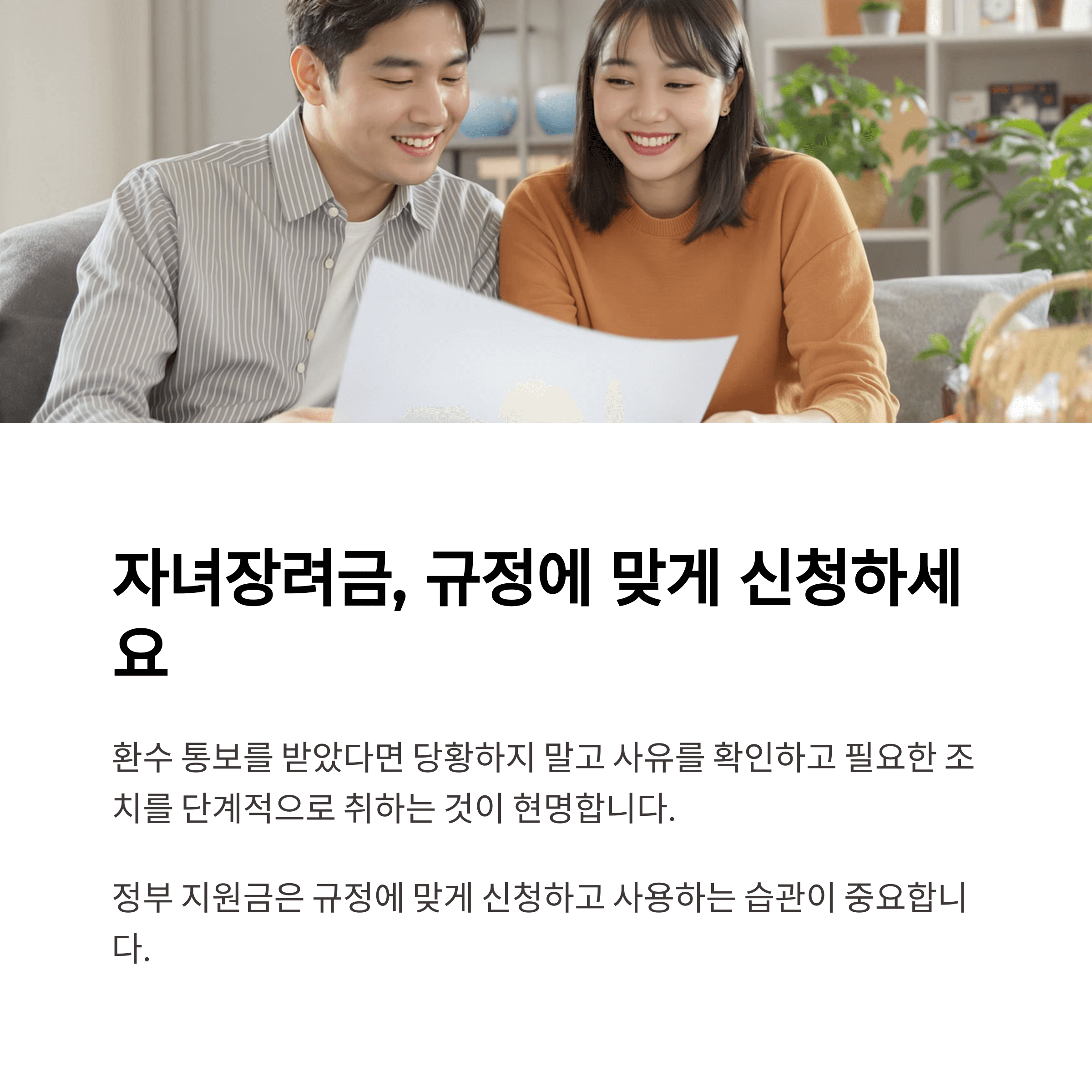 정부에서 지급하는 복지금이라도 무조건 받을 수 있는 건 아닙니다. 대표적인 예가 바로 자녀장려금 환수입니다. 열심히 신청해서 장려금을 받았는데, 갑자기 통보를 받고 다시 돌려줘야 한다면 당황스럽겠죠?