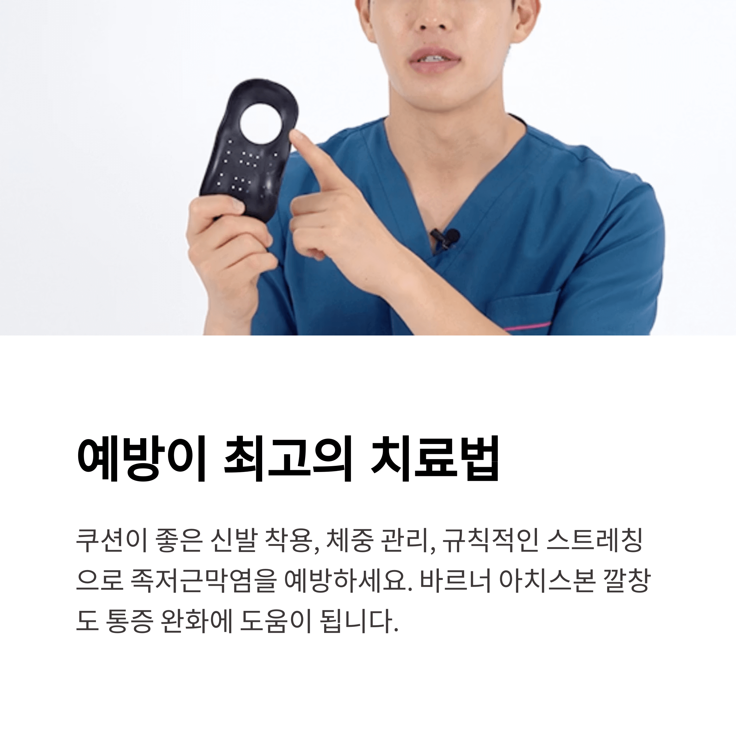 - 깔창과 스트레칭으로 통증을 완화할 수 있습니다.