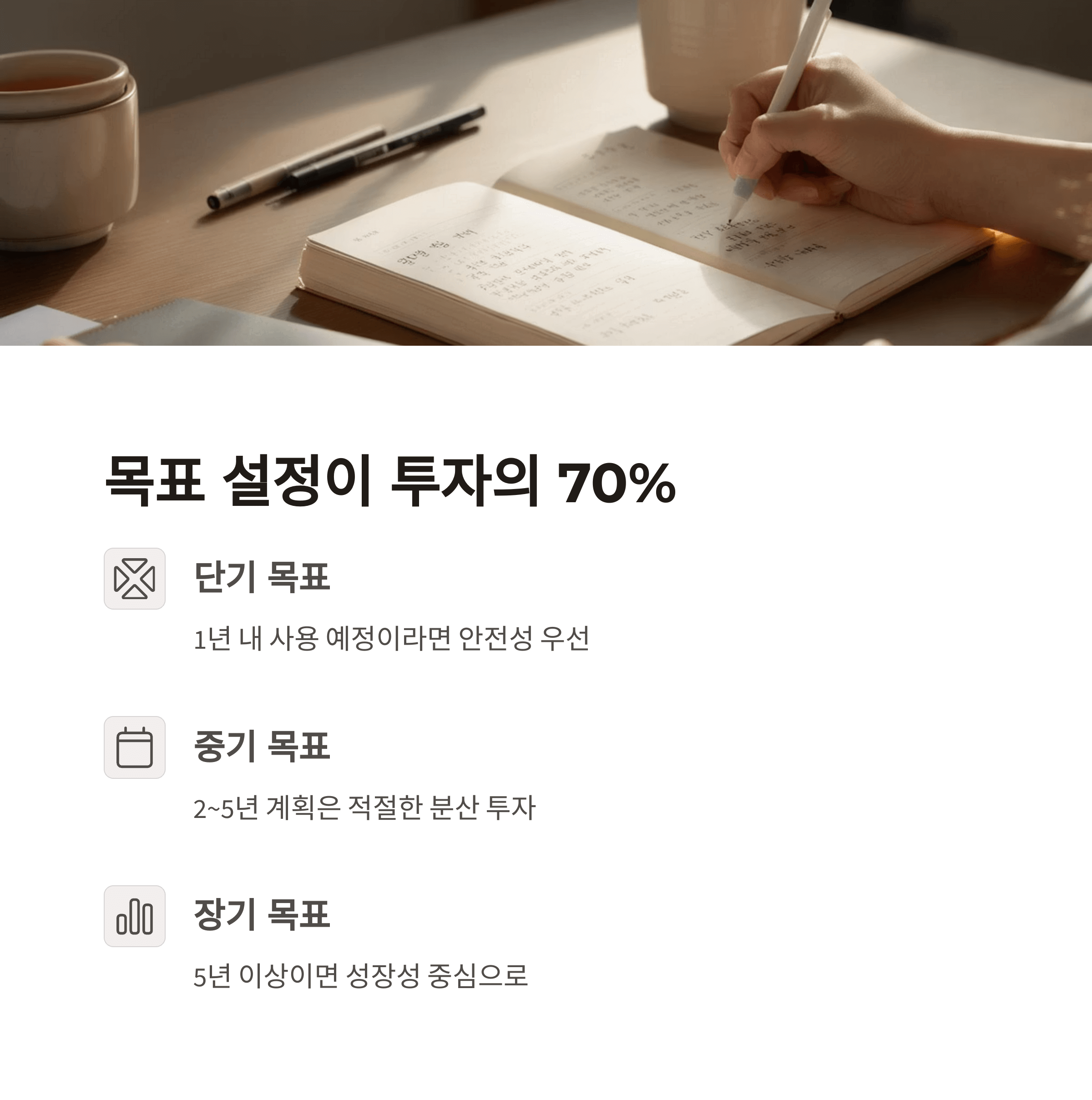 많은 분들이 처음 투자를 시작할 때 "어디에 넣을까"만 고민합니다. 하지만 투자의 70%는 목표 설정에서 결정됩니다. 1년 후 사용할 돈인지, 5년 이상 묻어둘 수 있는 돈인지부터 생각해 보세요.