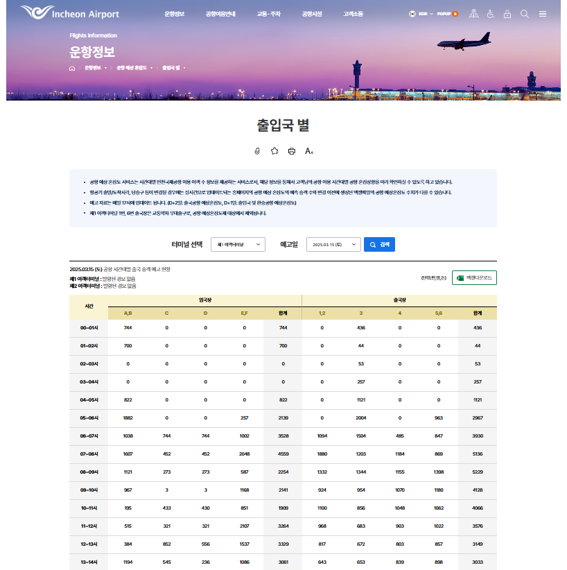 1. 인천공항 혼잡도 실시간 확인