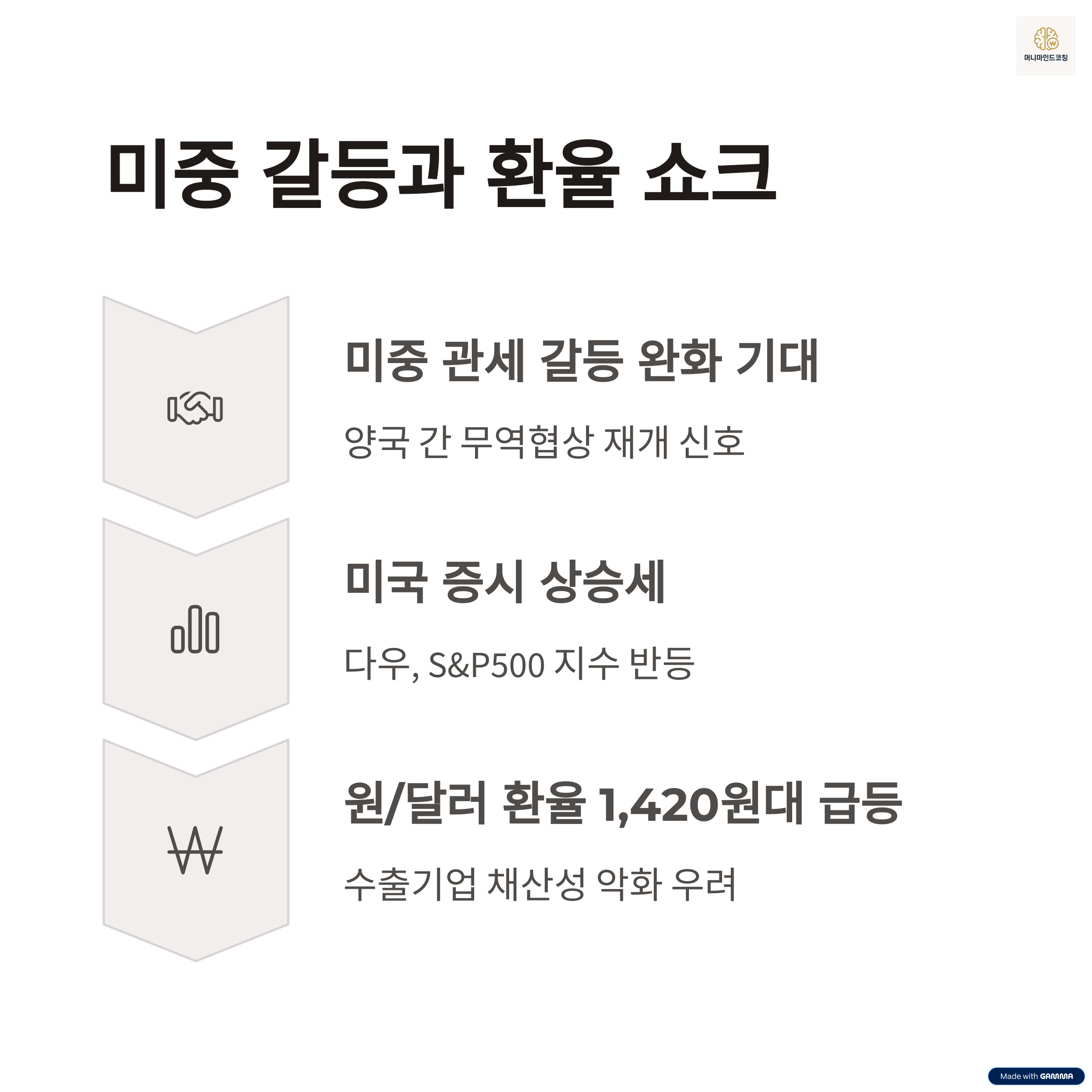 무역 긴장 완화 기대 속에 달러화 강세가 이어졌고, 원/달러 환율은 1,420원대 중후반으로 상승했습니다. 이는 수출 경쟁력과 수입물가에 큰 영향을 미칠 수 있습니다.