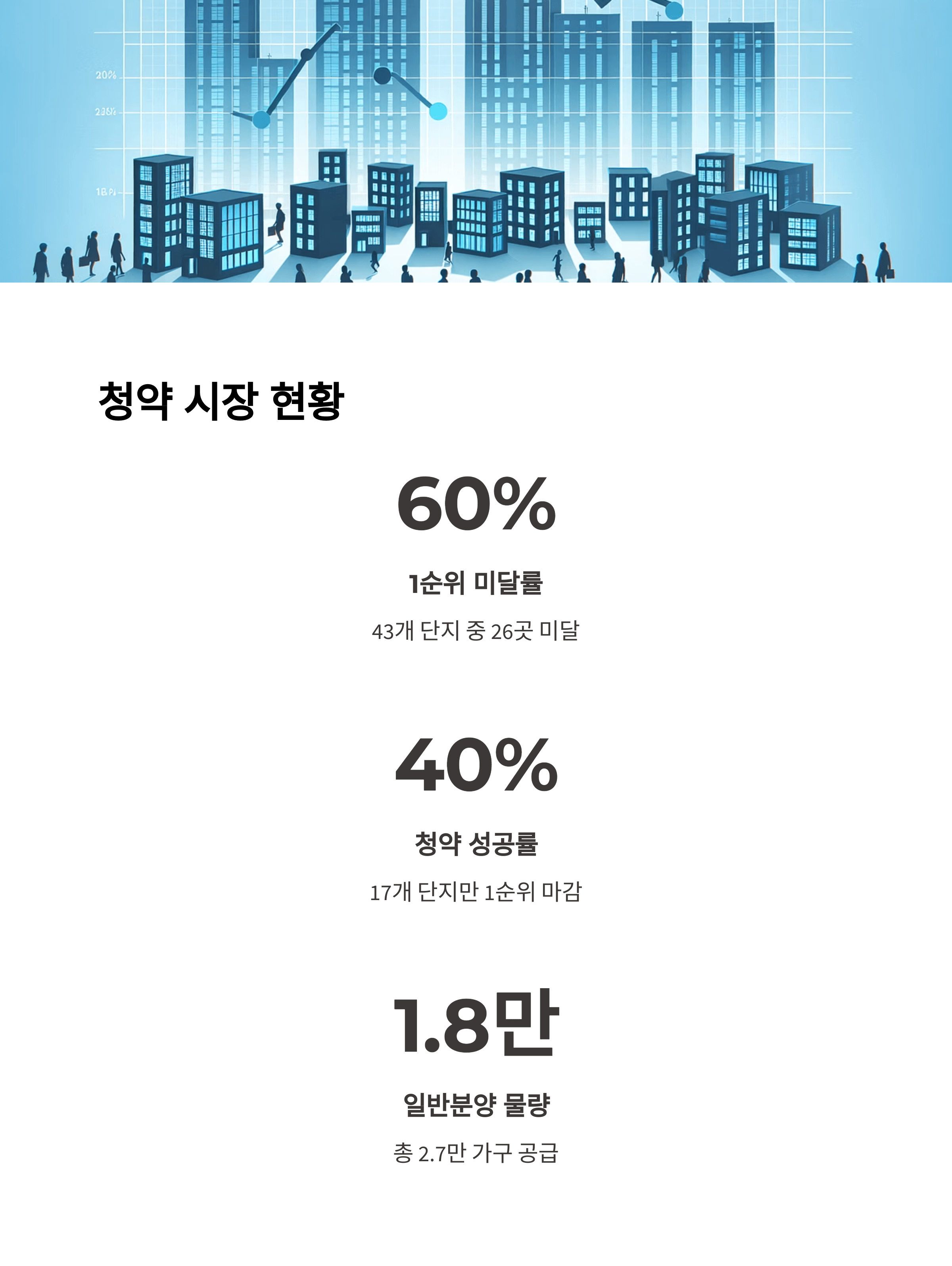 - 2025년 1월부터 4월까지 민간 분양 아파트의 약 60%가 1순위 청약 마감에 실패했다는 점이 주요 이슈입니다.