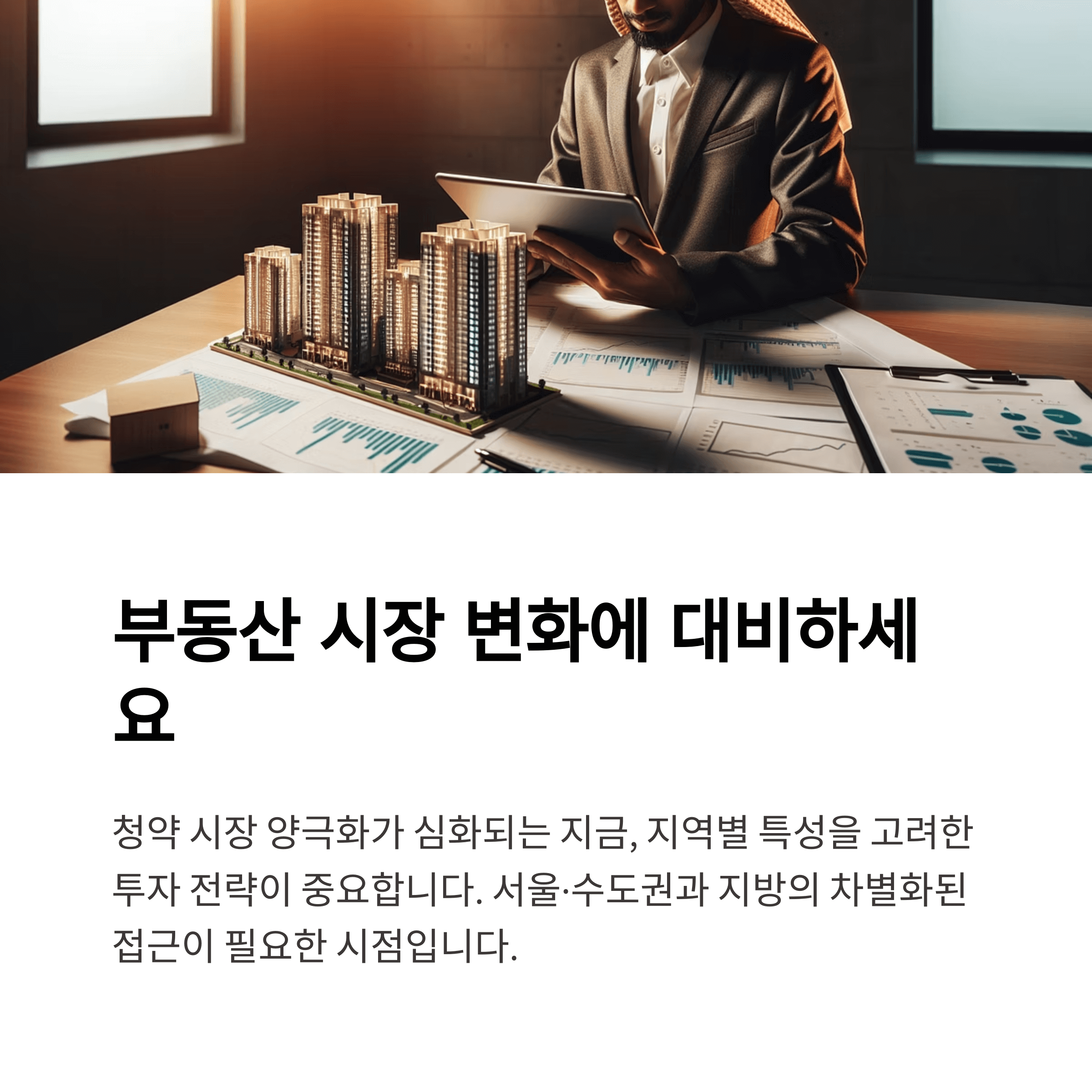 이처럼 서울·수도권과 지방 간 청약 시장의 분리 현상은 앞으로 시장 구조의 불균형 심화를 불러올 가능성이 있습니다.