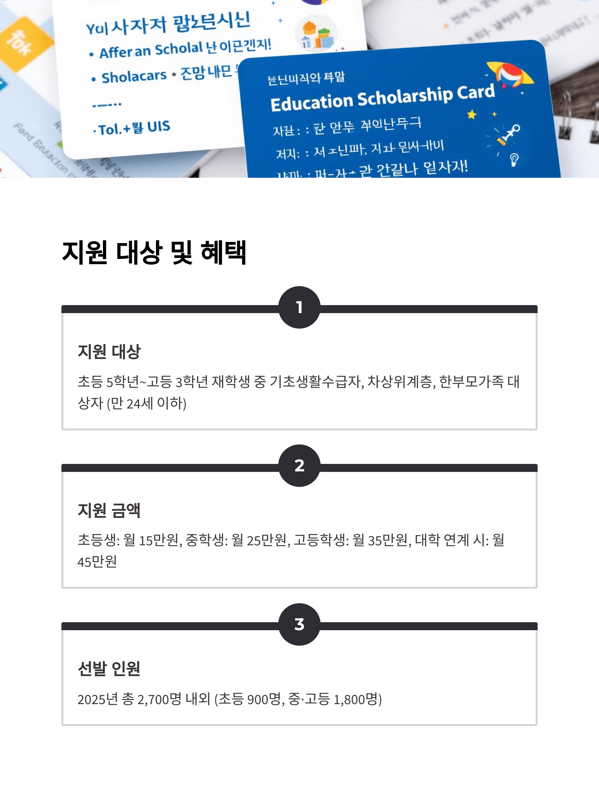• 학업과 진로탐색을 위한 카드 포인트 지급 방식과 다양한 교육 프로그램이 함께 제공됩니다.