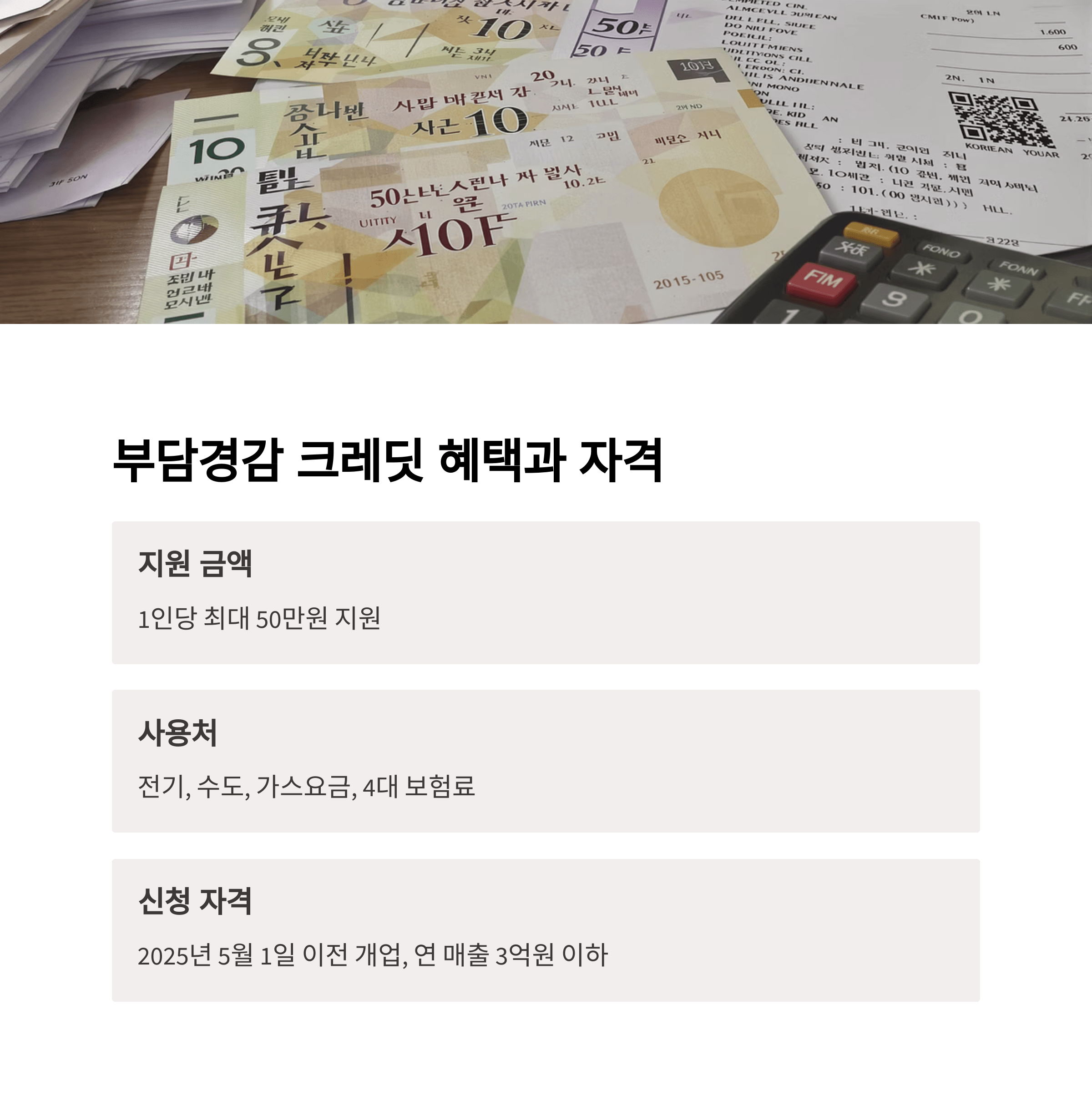 이 제도는 정부가 소상공인들이 필수적으로 내야 하는 비용을 덜 수 있도록 돕기 위해 만든 지원 정책이에요. 최근 몇 년간 물가와 금리가 많이 올라서 장사를 하시는 분들이 고정비(예: 전기세, 보험료 등)를 내는 데 어려움을 겪고 있었어요.